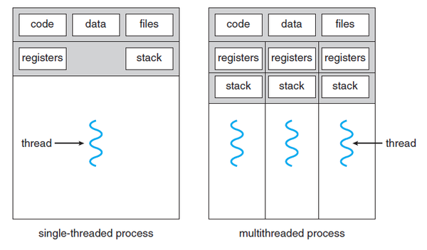 - Single Threaded process와 Multi-threaded process가 있다.
