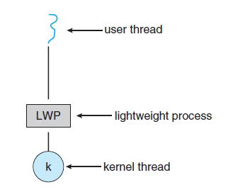 - LWP는 하나의 kenrel thread에 속해있으며, kernel thread가 block 되면 LWP 역시 함께 block 된다.