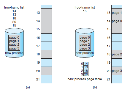 - 프로세스가 실행될 때, 그것의 페이지는 파일 시스템이나 예비 저장 장치로부터 가용한 main memory frame으로 load 된다.