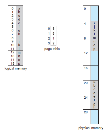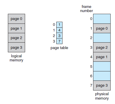 - 아래 그림에서 논리 주소 0은 페이지(page) 0, 변위(offset) 0이다.