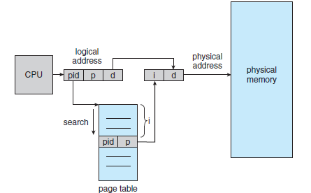 - 이 문제를 해결하는 방법 중 하나는 역 페이지 테이블(Inverted Page Table)을 사용하는 것이다.