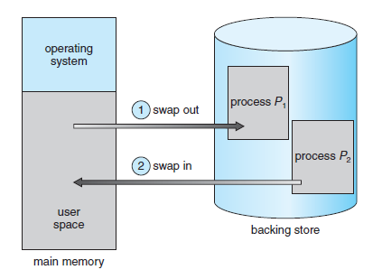 - 프로세스가 실행되기 위해서는 memory에 있어야 하지만, 프로세스는 실행 중에 임시로 예비 저장 장치(backup store)로 내보내어졌다가 실행을 계속하기 위해 다시 Memory로 되돌아올 수 있다.