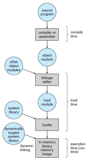 - 전통적으로 Memory 주소 공간에서 instruction과 data의 binding은 그 binding이 이루어지는 시점에 따라 다음과 같이 구분된다.