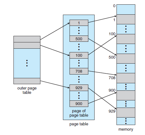 - 이에 커지는 페이지 테이블을 Main memory에 연속적으로 할당하기 보다, 페이지 테이블을 여러 개로 나누어 사용하는 방법이 가능하다.