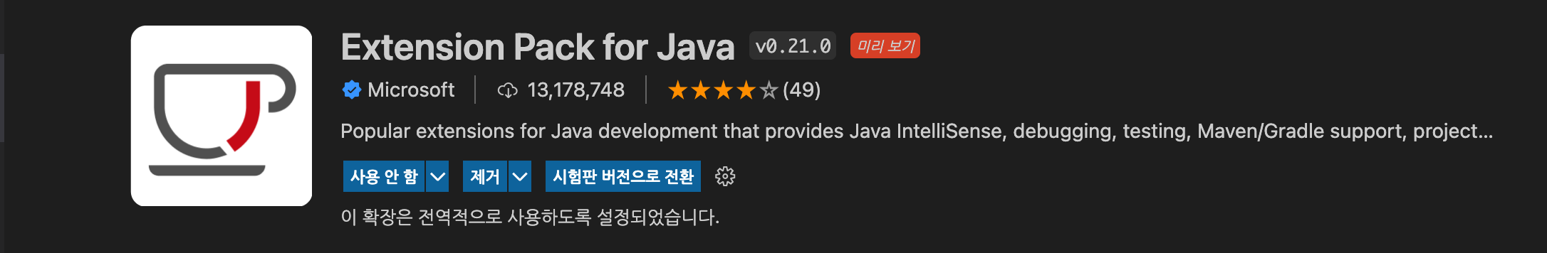 1-(2) 'Extension Pack for Java'을 설치